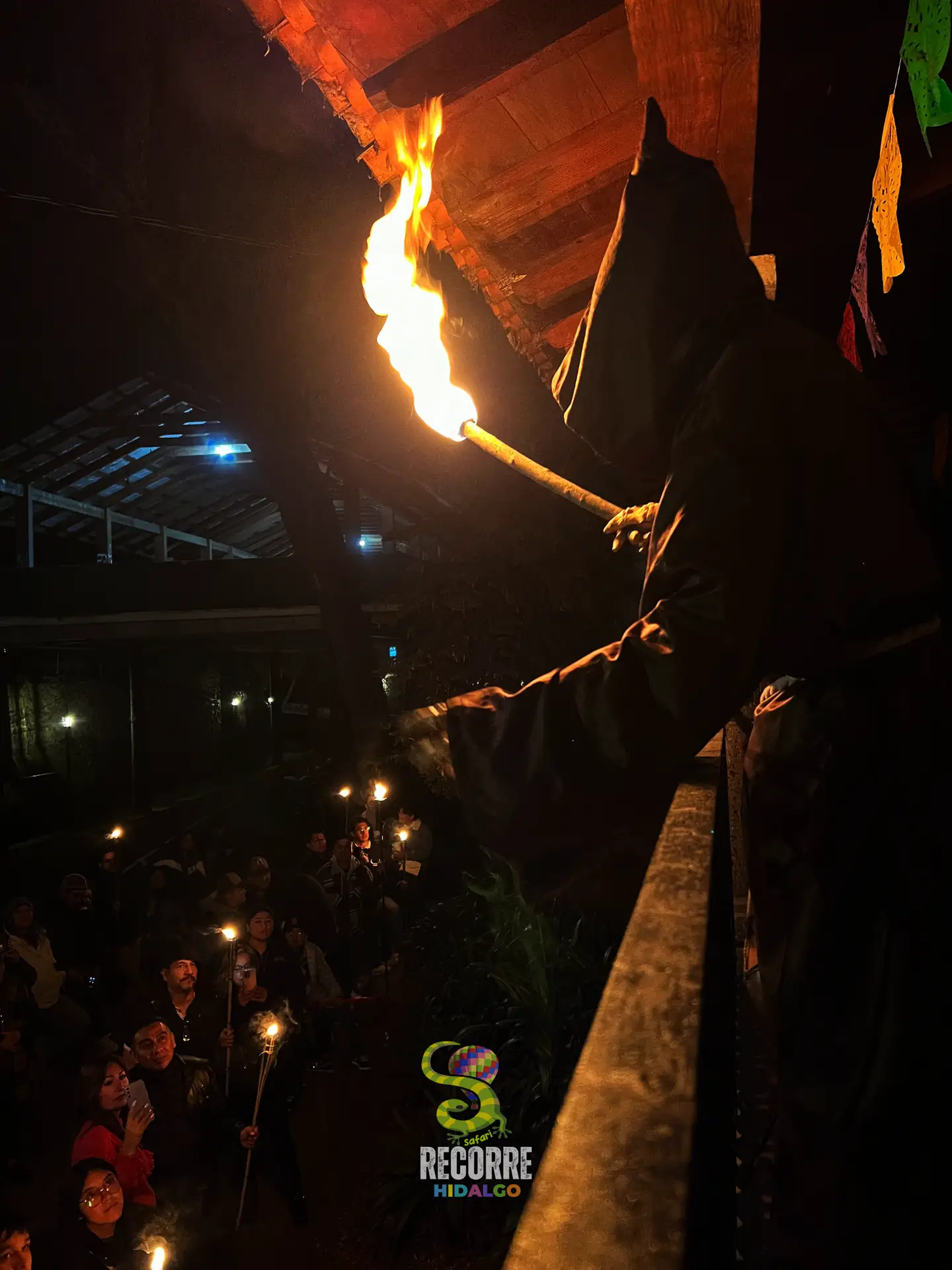Al caer el sol, inicia el recorrido. Calles empedradas, antorchas encendidas y una introducción al misterio de Huasca. Entre sombras, personajes como el Monje del Exconvento, La Llorona, el Charro Negroy los Duenes cobran vida con actores, luces y sonidos envolventes.